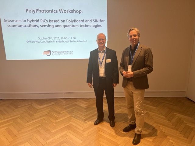 Berlin, 08.+ 09. Oktober 2025 – Die Photonics Days 2025 waren ein voller Erfolg und boten eine spannende Plattform für den Austausch und die Präsentation neuester Innovationen in der Photonikbranche. Auch der PolyPhotonics Berlin e.V. war wieder dabei und hat sich mit einer Reihe von Workshops und einer eigenen Ausstellung in das Event eingebracht.